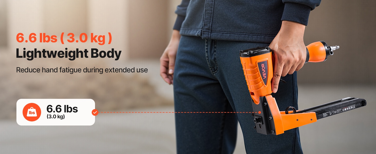 Soveltuu verhoilutöihin, kevyisiin huonekalujen kokoamistehtäviin, puutöihin, kaapistojen kokoamiseen, kehysten tekoon, listoituksiin sekä esimerkiksi sohvien ja tuolien viimeistelyyn ja muihin tee se itse -projekteihin. Työkalu kytketään paineilmakompressoriin (paineilmakompressori ei sisälly toimitukseen).
