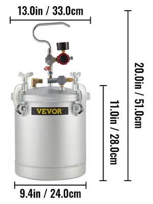 Paineistettu maalisäiliö, jonka tilavuus on 10 L (2.5 gallonaa), sopii tilanteisiin, joissa tarvitaan tasainen maalausjälki ja suurempi maalimäärä ilman jatkuvaa täyttöä. Mukana tuleva ruisku ja ilma- sekä nesteletkut helpottavat työskentelyä esimerkiksi puupintojen, kalusteiden, aitojen, ovien, ikkunoiden ja erilaisten mallien maalauksessa.