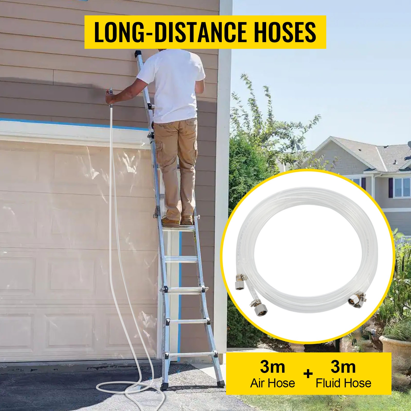 Ruiskusäiliössä on 3 m korkeapaineletku ja 3 m ilmaletku, jotka mahdollistavat työskentelyn kauempanakin säiliöstä ja tarjoavat liikkumavapautta erilaisissa maalauskohteissa.