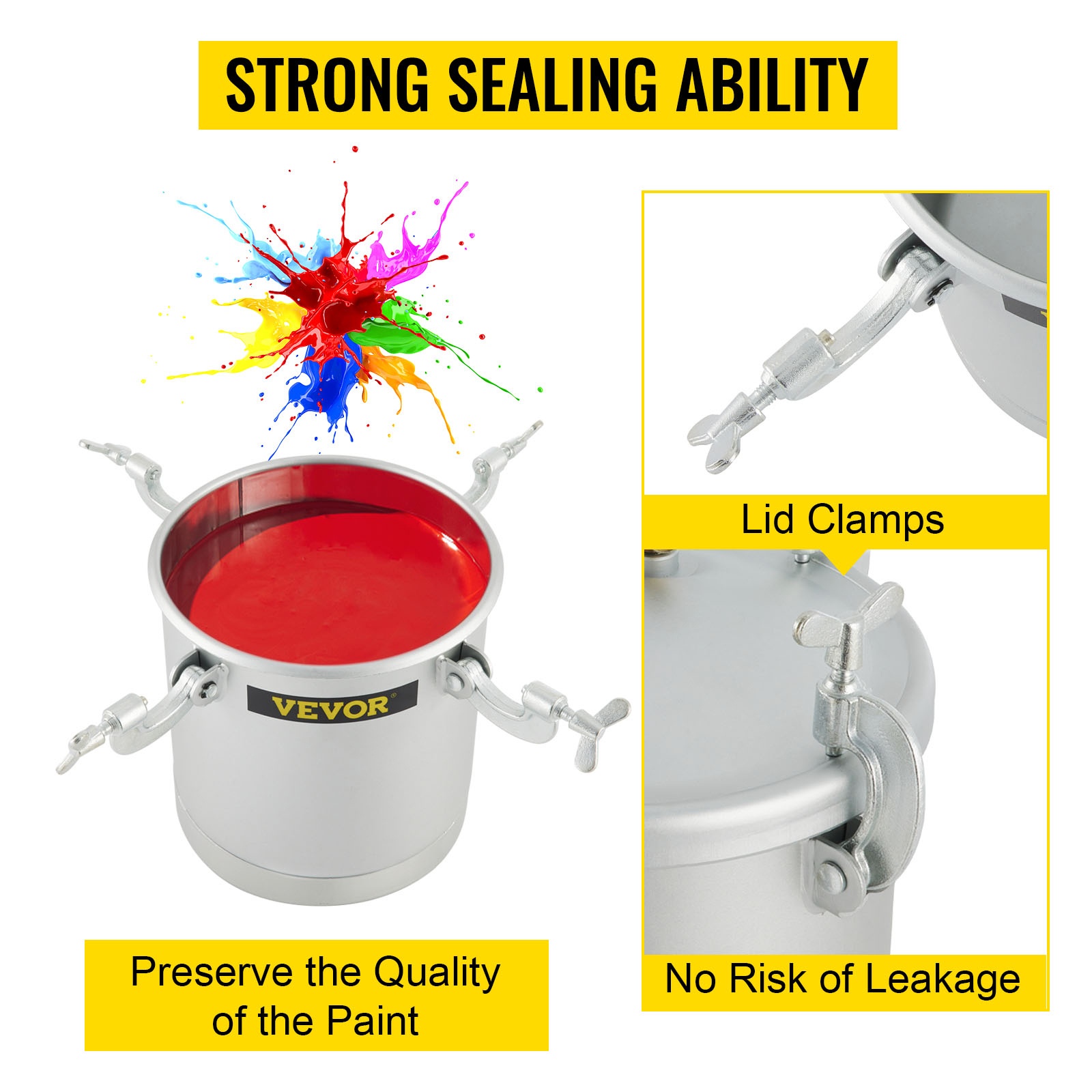 Vankka hiiliteräksinen kansi auttaa säilyttämään maalin laadun ja ehkäisee vuotoja. Kannen kahvojen avulla säiliötä on myös helpompi siirtää, mikä säästää aikaa ja vaivaa.