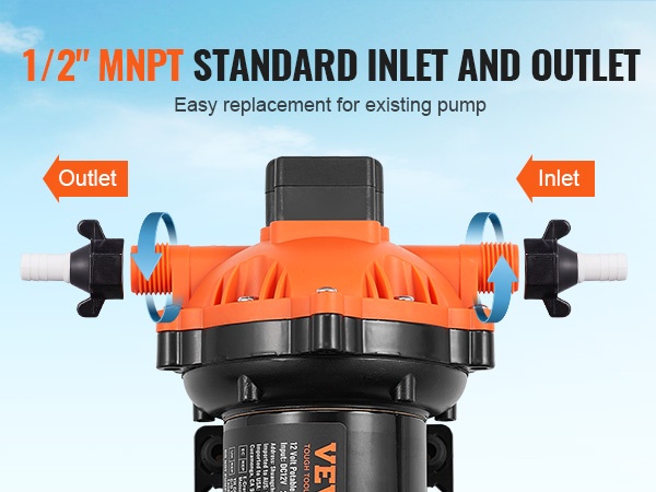 Tulossa ja lähdössä on vakio 1/2" MNPT-liitännät, mikä helpottaa pumpun liittämistä olemassa olevaan järjestelmään. Vaihto ja asennus sujuvat nopeasti ilman erityistyökaluja.