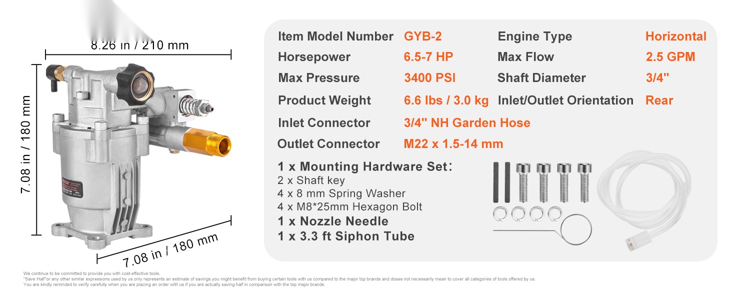 - Laaja yhteensopivuus: korvaava pumppu moniin vaakamoottorilla varustettuihin bensiinikäyttöisiin painepesureihin