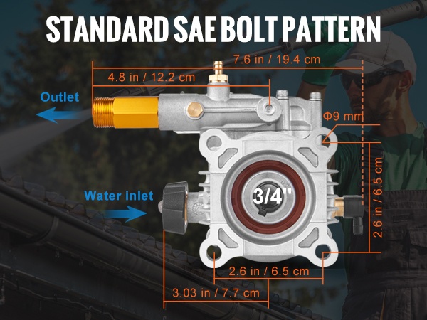 Varaosapumppu käyttää standardia SAE-pulttijakoa, mikä helpottaa asennusta. Se sopii erilaisiin vaakamoottorilla varustettuihin bensiinipainepesureihin ja on yhteensopiva Simpson MorFlex -malleihin 40224, 40225, 40226.