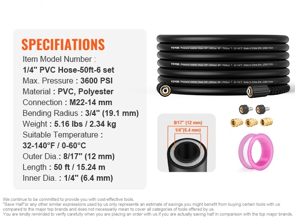 - Liittimet: 3/8"-φ14.8 uros, 3/8"-φ15 naaras – sopii useimpiin painepesurimalleihin