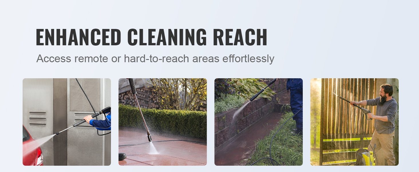 - Pituus: 30.5 m – ulottuu laajalle alueelle ilman pesurin siirtelyä