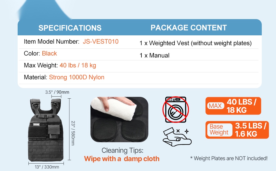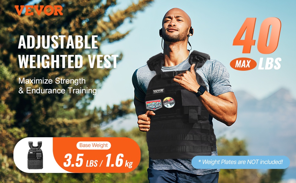 Tämä säädettävä painoliivi alkaa painosta 3.5 paunaa ja sen voi lisälevyillä (ei sisälly toimitukseen) kasvattaa jopa 40 paunaan. Näin voit mukauttaa harjoittelusi kuormitusta ja tehoa oman tasosi ja tavoitteidesi mukaan. Huomio: liivi ja painolevyt myydään erikseen.