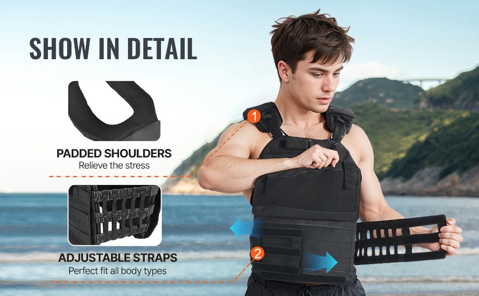 Säädettävät hihnat mahdollistavat napakan istuvuuden eri vartalotyypeille. Pehmustetut olkahihnat auttavat vähentämään painon aiheuttamaa painetta ja lisäävät käyttömukavuutta pidemmissä harjoituksissa.