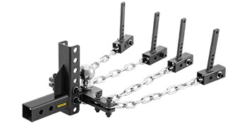 Painonjakajavetokoukku, jossa on heilunnanvaimennus, 2" vetokuula, 4" pudotus/korotus ja 4 ketjua. Soveltuu perävaunujen vetoon, kun halutaan tasata kuormaa vetoajoneuvon ja perävaunun välillä sekä vähentää perävaunun heilumista ajon aikana.