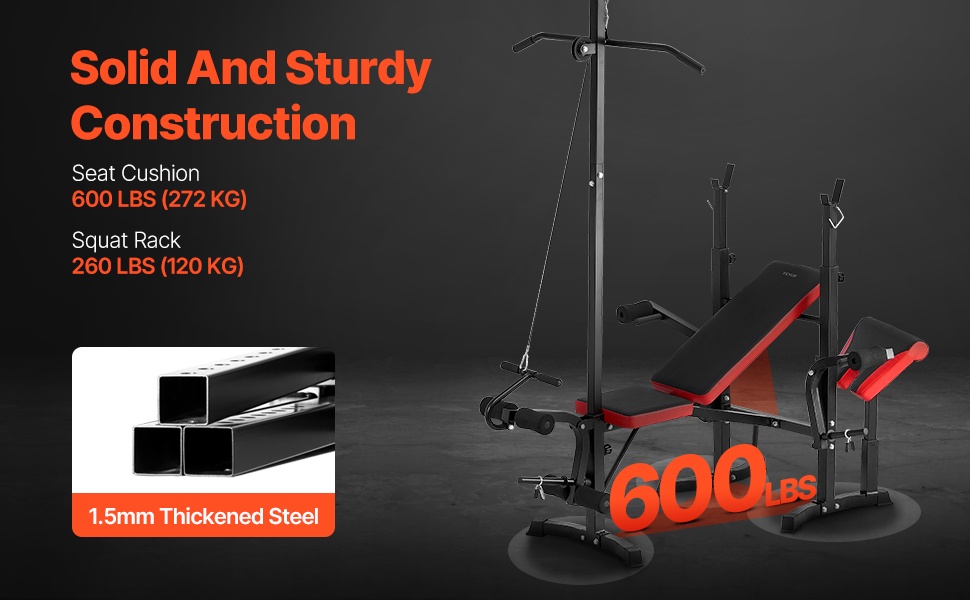 Voimaharjoittelupenkki on valmistettu raskaasta, kaupallisen tason teräksestä. Kompakti ja vakaa rakenne tarjoaa hyvän tuen penkkipunnerruksiin, kyykkyihin ja muihin liikkeisiin.