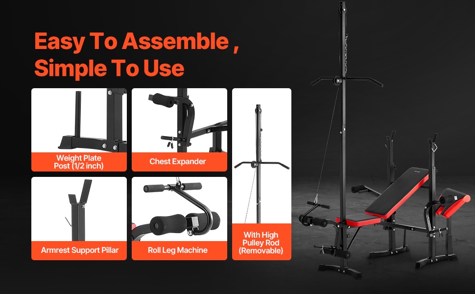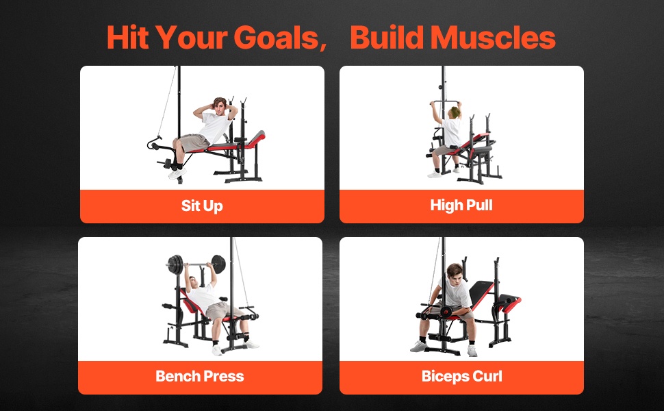 Tämä monitoiminen painopenkki sisältää kyykkytelineen alavartalon harjoitteluun, 2 leuanvetokahvaa käsivarsien lihasten treenaamiseen sekä tasapenkin vatsalihas- ja jalkaliikkeisiin. Yhdellä laitteella voit rakentaa kokonaisen harjoitusrutiinin.