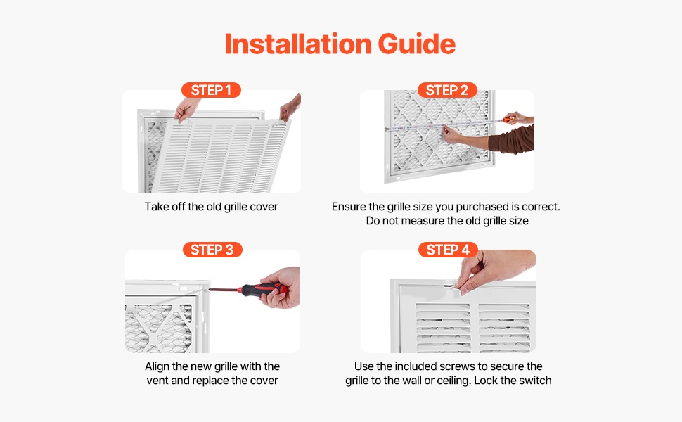 Toimitukseen sisältyvät ruuvit mahdollistavat säleikön nopean asennuksen. Asennus käy muutamassa vaiheessa, minkä jälkeen ilmanvaihtojärjestelmä voidaan ottaa käyttöön.
