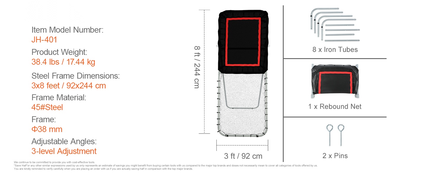 - Suuri verkkoalue: 5 x 7 jalkaa / 1524 x 2133.6 mm tehokkaaseen syöttö- ja laukomisharjoitteluun