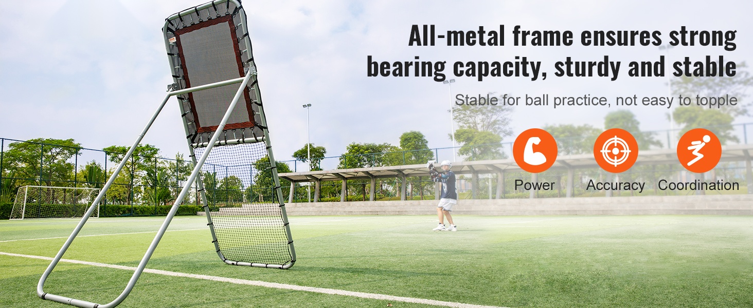 Paksunnettu rautaputkirunko pitää palautusseinämän tukevasti paikoillaan myös voimakkaissa laukauksissa. Rakenne on suunniteltu ulkokäyttöön, ja se kestää toistuvaa käyttöä ilman, että verkko tai runko helposti vääntyy tai kaatuu.