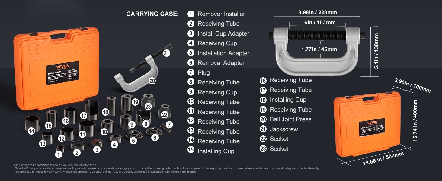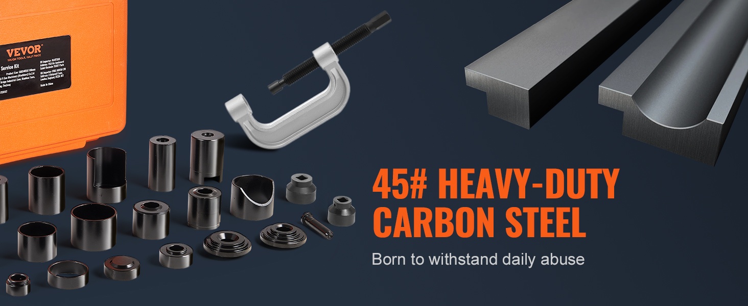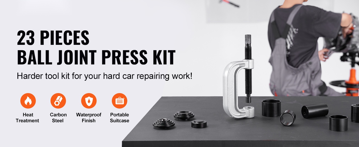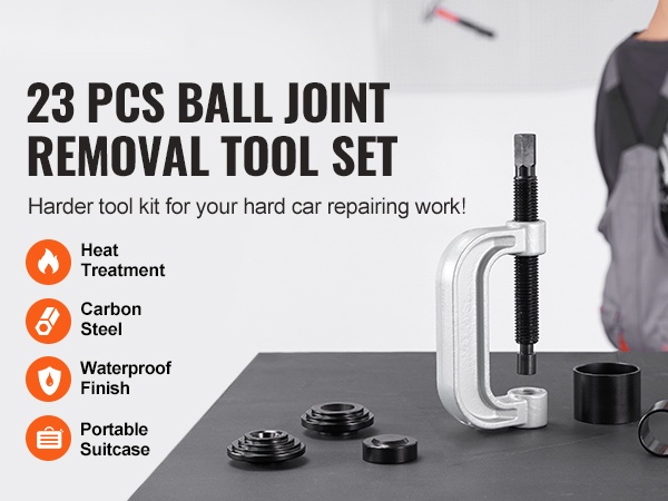 Tämä 25-osainen pallonivelen puristinsarja on valmistettu kestävästä hiiliteräksestä ja se on lämpökäsitelty jopa 900℃ lämpötilassa, mikä parantaa kovuutta, käyttöikää ja korroosionkestävyyttä. Sarja soveltuu pallonivelten asentamiseen ja irrottamiseen useimmista 2WD- ja 4WD-ajoneuvoista.