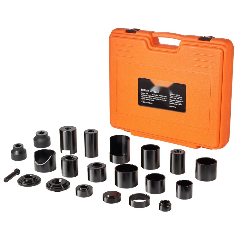 23-osainen pallonivelpuristinsarja ajoneuvojen huoltoon ja korjaukseen. Sarja on valmistettu hiiliteräksestä ja se on lämpökäsitelty 900℃:ssa, mikä parantaa kestävyyttä ja käyttöikää. Sopii useimpiin 2WD- ja 4WD-autoihin, joissa on Dana 28, 30, 35, 44 tai 60 etuakseli.