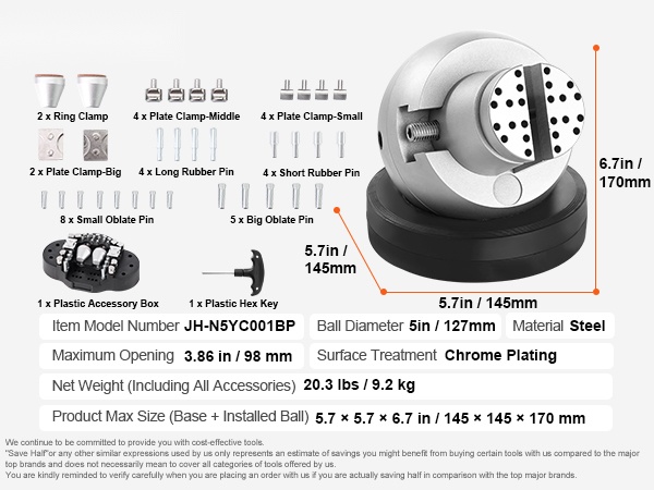 Pallopuristin teräsrunko 3 tuumaa 30 lisäosaa karkaistulla kromipinnoitteella korutyöhön