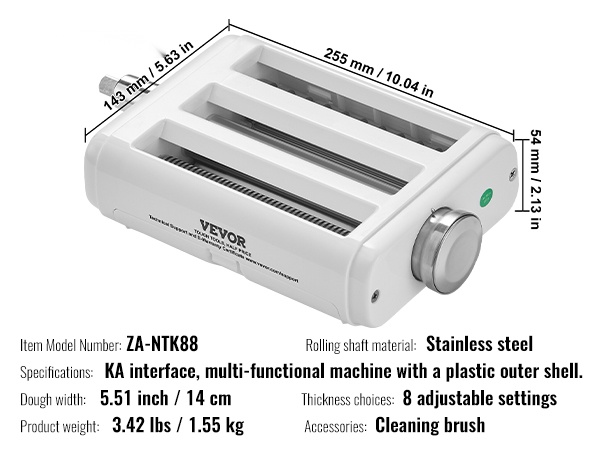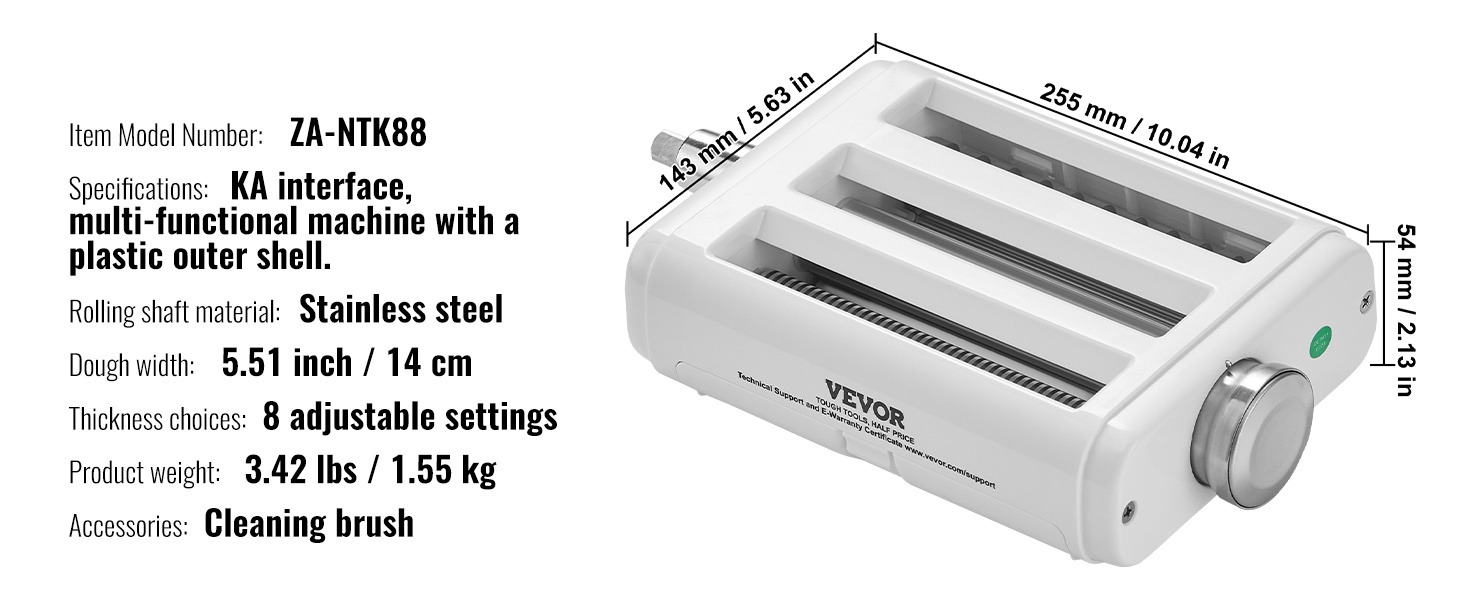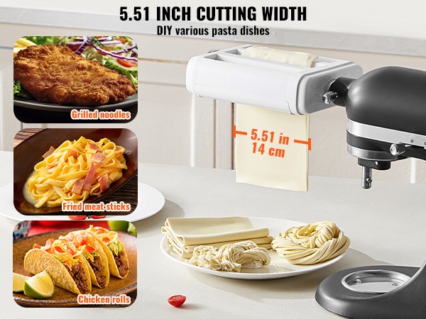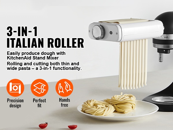Tämä 3-IN-1 -pastalisäosa on yhteensopiva KitchenAid-yleiskoneiden kanssa ja muuttaa ne käteväksi pastakoneeksi. Voit vaivata taikinan ja kaulia siitä italialaista tuorepastaa samalla koneella. Lisäosa sopii monenlaisiin pastataikinoihin ja -rakenteisiin.