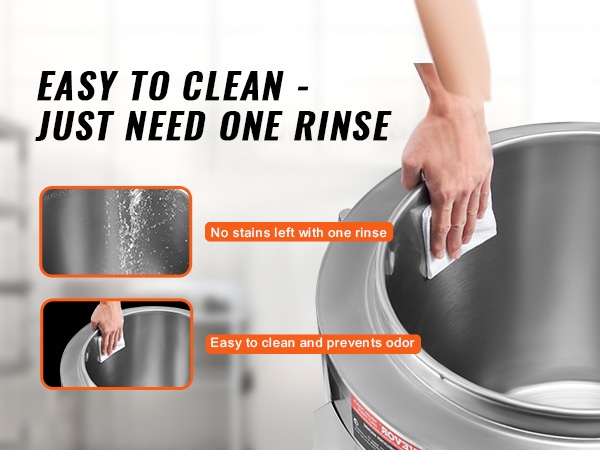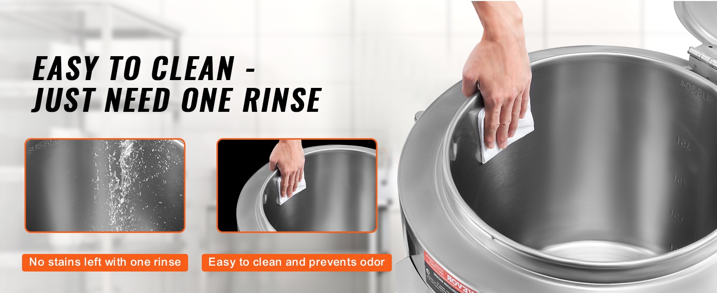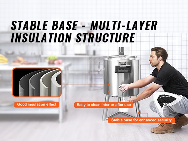 Sisäsäiliö on valmistettu elintarvikelaatuisesta 304-ruostumattomasta teräksestä, ja ulkokuori on tukevaa ruostumatonta terästä. Rakenne on korroosionkestävä, helposti puhdistettava ja suunniteltu pitkäaikaiseen, ammattimaiseen käyttöön.