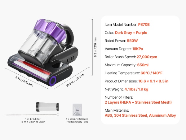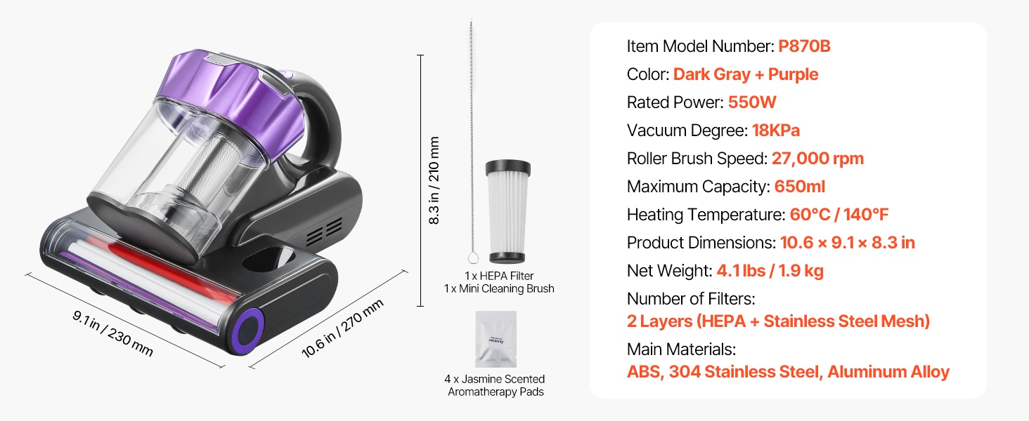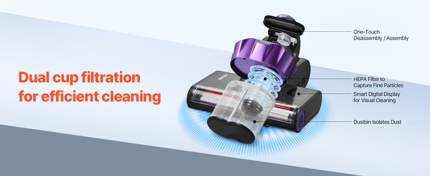 Tämä patjapölynimuri puhdistaa tekstiilit syvältä ja poistaa tehokkaasti hiukset, siitepölyn, pölyn, ihosolut ja muun hienojakoisen lian. Sopii hyvin koteihin, joissa on lapsia ja lemmikkejä.