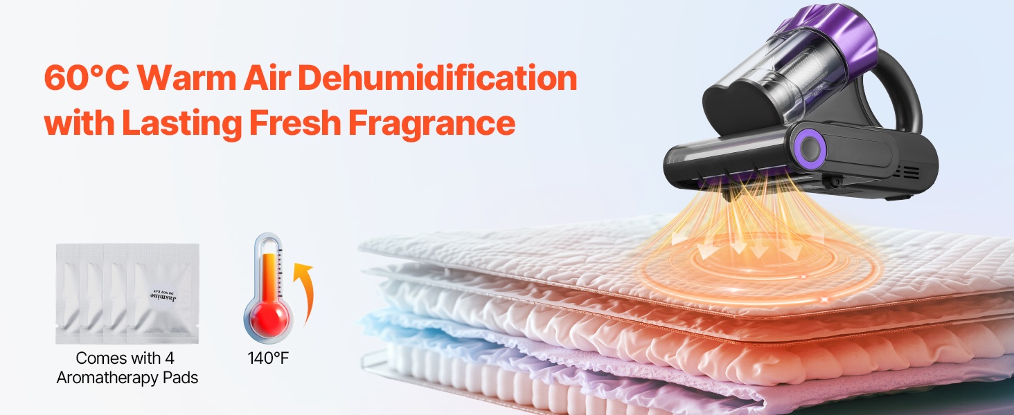 Voit yhdistää mukana tulevan tuoksun 140℉ kuuman ilman toiminnon kanssa. Laite puhaltaa lämmintä ilmaa ja levittää samalla miellyttävää tuoksua, mikä tekee nukkumisympäristöstä miellyttävämmän.
