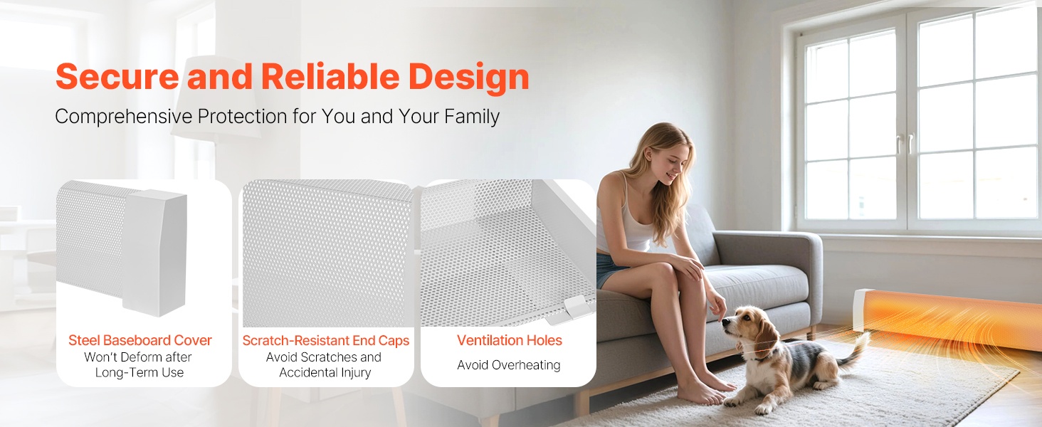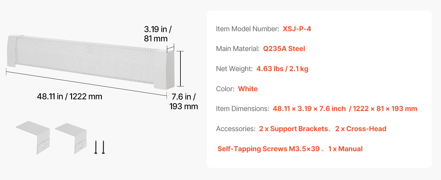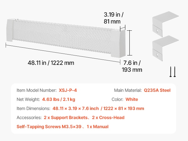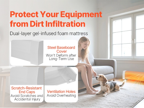 Q235A-teräksestä valmistettu suojus kestää pitkäaikaista käyttöä ilman muodonmuutoksia. Mukana tulevat naarmuja estävät päätypalat suojaavat pintaa arjen kolhuilta. Optimoitu ritilärakenne parantaa ilmankiertoa, auttaa ehkäisemään ylikuumenemista ja voi pidentää lämmittimen käyttöikää.