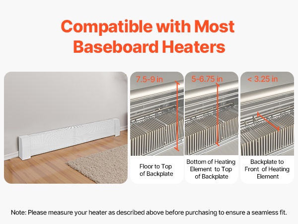Patterinsuojus on suunniteltu sopimaan useisiin yleisiin jalkalistalämmittimien kokoihin. Tärkeä huomio: mittaa oma lämmittimesi ennen ostoa varmistaaksesi sopivan mitan.