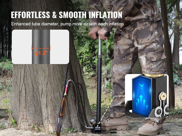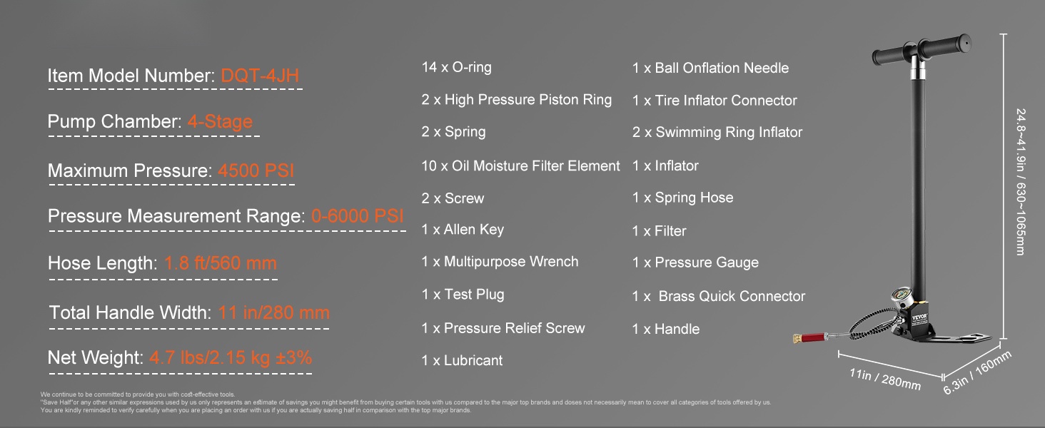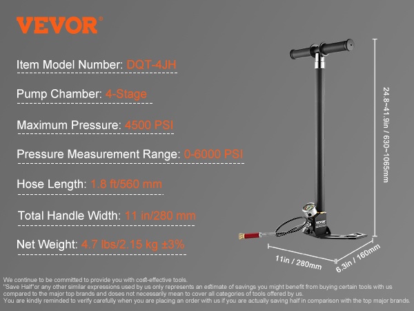 4-vaiheinen korkeapaineinen PCP-käsipumppu tuottaa enintään 4500 PSI (30Mpa) paineen. Ruostumattomasta teräksestä valmistettu rakenne ja öljy-kosteussuodatin poistavat yli 90 % kosteudesta, mikä auttaa suojaamaan paineilmalaitteita. Pumppu soveltuu esimerkiksi ilmakiväärien, autonrenkaiden, polkupyöränrenkaiden, kajakkien ja pallojen täyttöön.