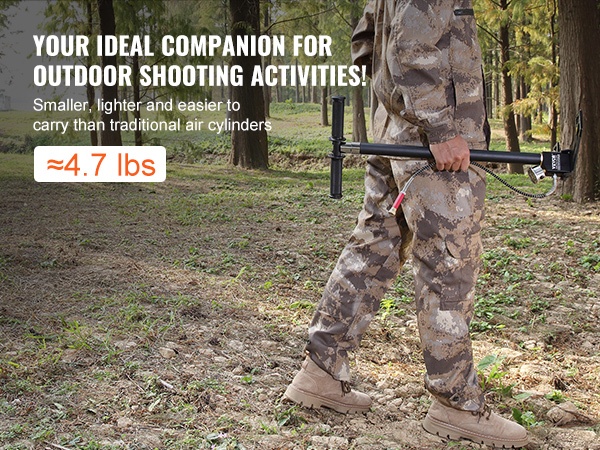 Käsipumppu on suunniteltu kevyeksi ja helposti kannettavaksi, joten sen kuljettaminen esimerkiksi ampumaradalle tai retkelle on vaivatonta. Pumppu on kätevä vaihtoehto painaville paineilmasäiliöille.