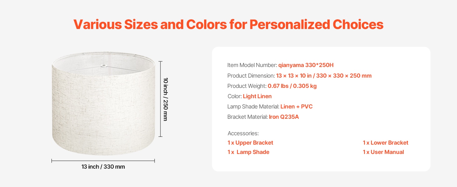 Pellavavarjostin rumpumallinen pellava PVC 330×330×250 mm E14 E26 E27