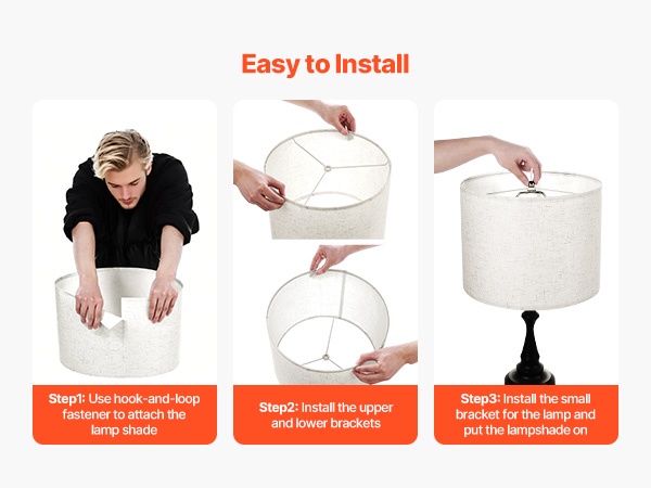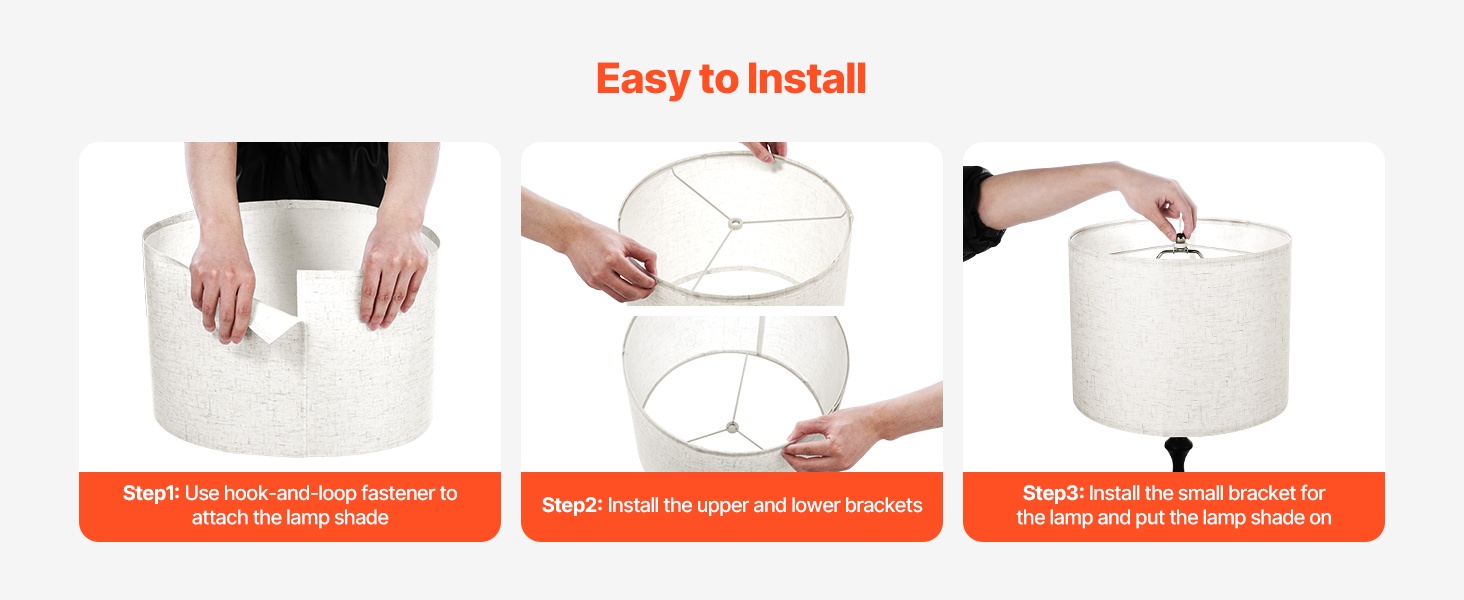 Varjostimen mukana tulee siihen sopiva adapteri ja täydellinen työkalusetti, joten asentaminen onnistuu myös ilman aiempaa kokemusta. Varjostin on yhteensopiva E14-, E26- ja E27-kantaisille valaisimille, ja asennus käy kolmessa selkeässä vaiheessa.