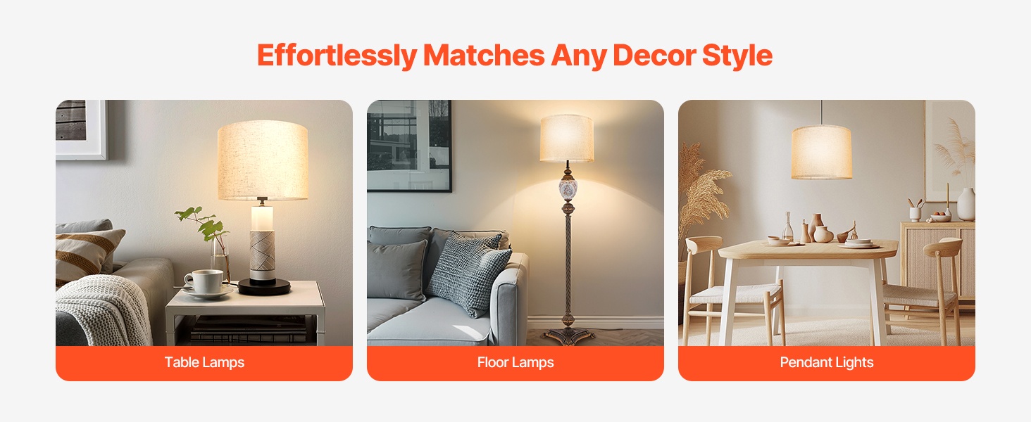 Tämä vaihtovarjostin sopii useisiin pöytä- ja yöpöytävalaisimiin sekä muihin vastaaviin valaisimiin. Se luo kodikkaan ja rauhoittavan tunnelman, ja on helppo tapa uudistaa vanhan valaisimen ilme ilman, että koko lamppua tarvitsee vaihtaa.