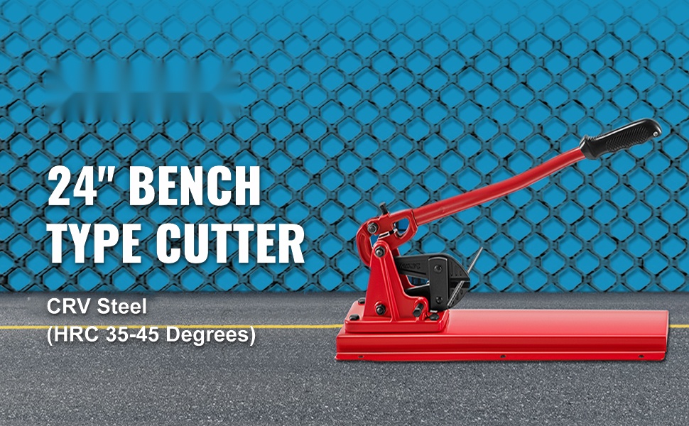 24" pulttileikkurimallinen penkkileikkuri soveltuu teräsvaijerin leikkaamiseen, vaijeriholkkien puristamiseen ja kaapeleiden katkaisuun. Leikkauskyky on enintään 1/2 tuumaa (12 mm), mikä kattaa tyypilliset käyttötilanteet asennus- ja huoltotöissä.