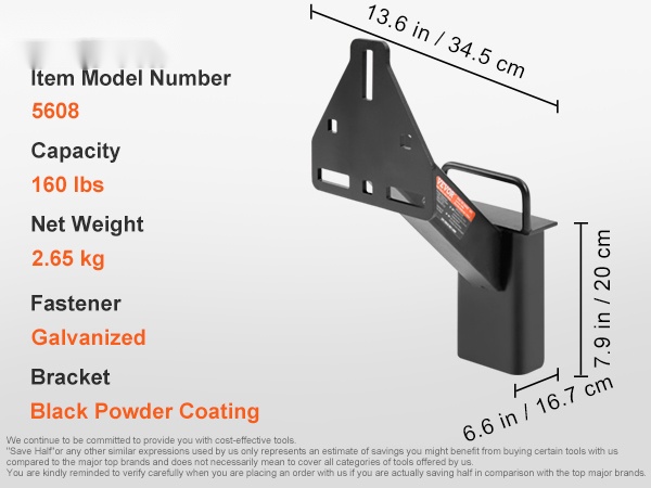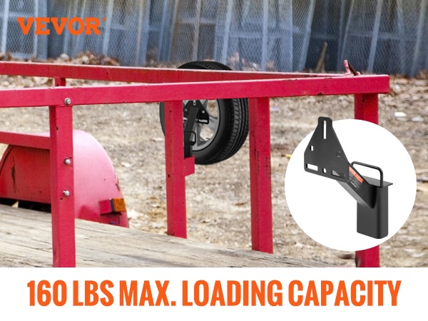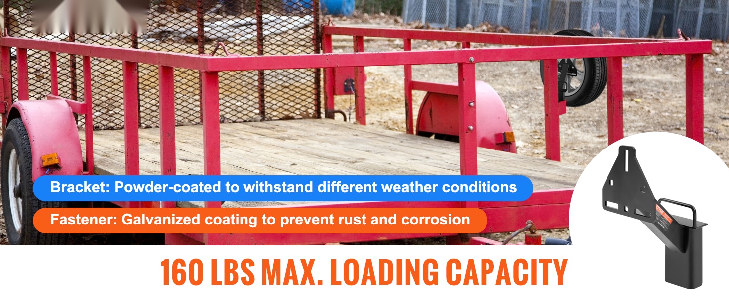 Perävaunun vararengasteline, jonka kantavuus on 160 lbs (noin 72.6 kg), sopii erikokoisten renkaiden kuljettamiseen. Musta pulverimaalattu ja sinkitty pinta kestää sateen, lian ja vaihtelevat ulko-olosuhteet.