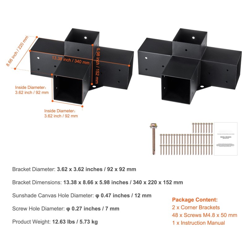 Nämä nelisuuntaiset pergolan kulmakiinnikkeet on suunniteltu suojaamaan puupalkkeja sateelta ja voimakkaalta auringonpaisteelta. Ne tarjoavat jämäkän tuen esimerkiksi piharakennelmille, pergoloille, huvimajoille ja pihakatoksille.