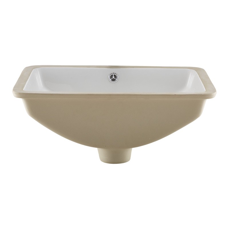 Tämä suorakaiteen muotoinen, tasoon upotettava kylpyhuoneen pesuallas sopii erityisesti pieniin tiloihin. Valkoinen keraaminen allas asennetaan työtason alle, jolloin tasopinta jää mahdollisimman avaraksi ja ilme siistiksi ja moderniksi.