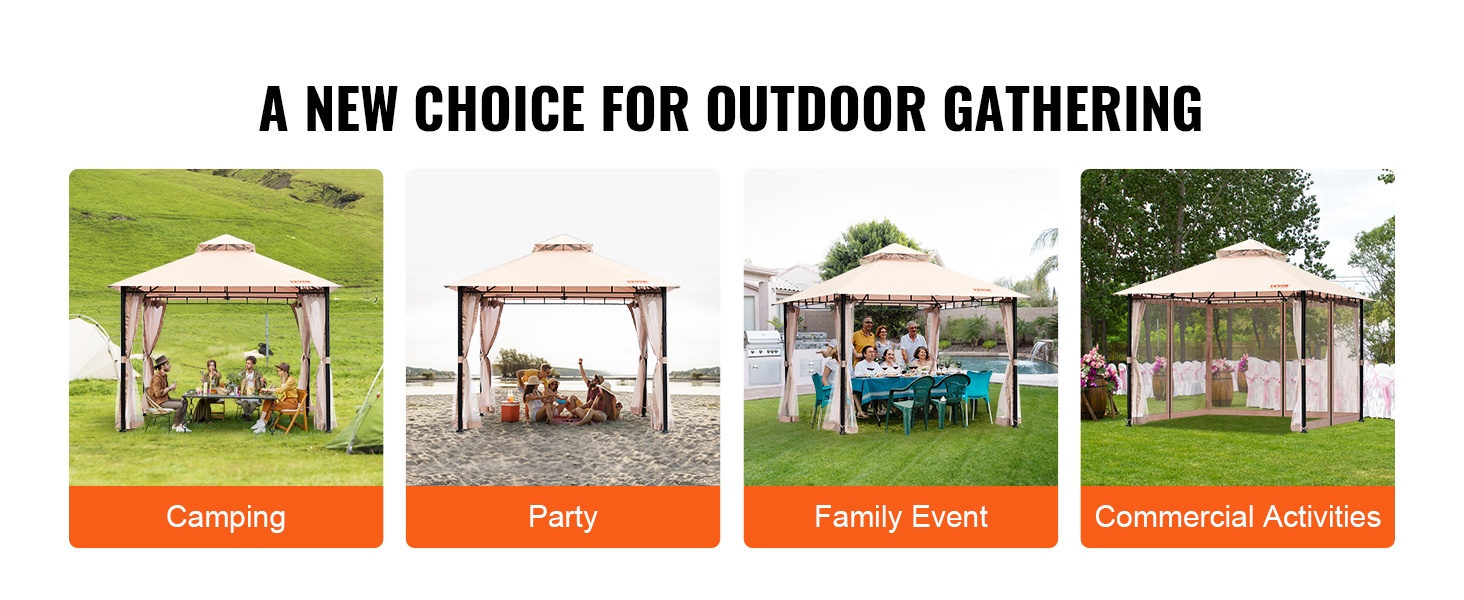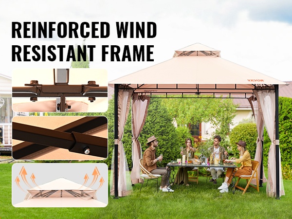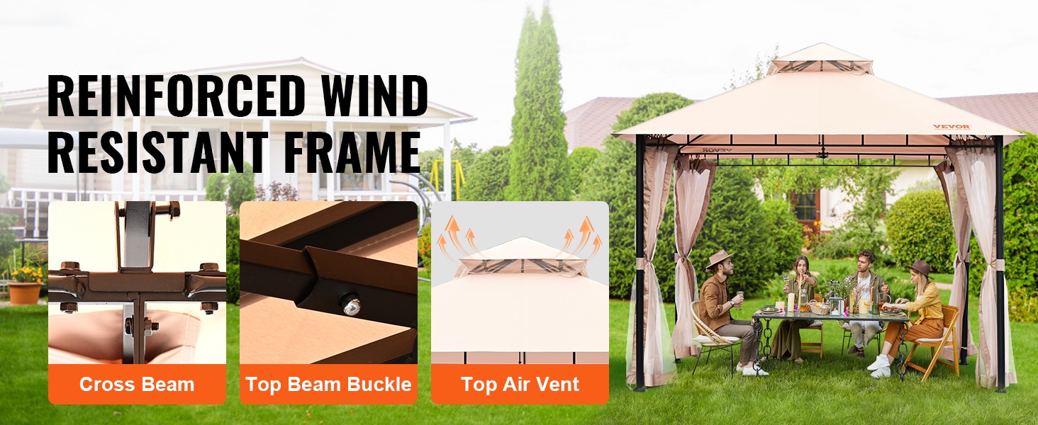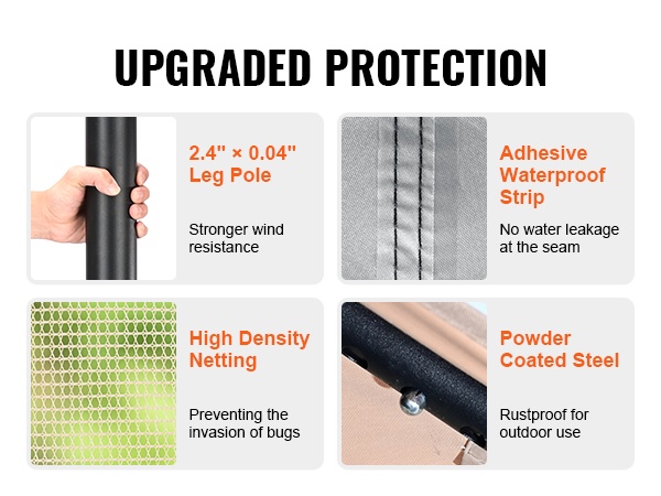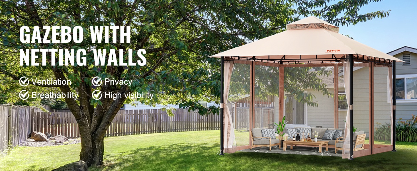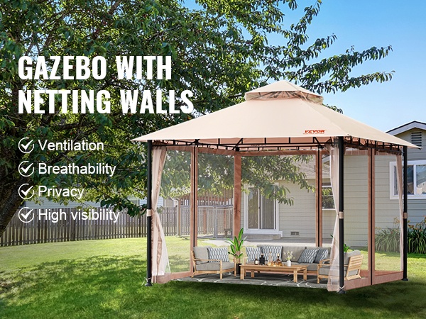 Tämä pihapaviljonki tuo suojaa ja viihtyisyyttä ulkotiloihin ympäri vuoden. Katemateriaali on PU-pinnoitettu 180G polyesteri, joka tarjoaa UPF 50+ -aurinkosuojan, sekä tuulen- ja sateenkestävyyttä. Mukana tuleva hyttysverkko auttaa pitämään ötökät loitolla, jotta voit nauttia ulkona olosta rennosti.