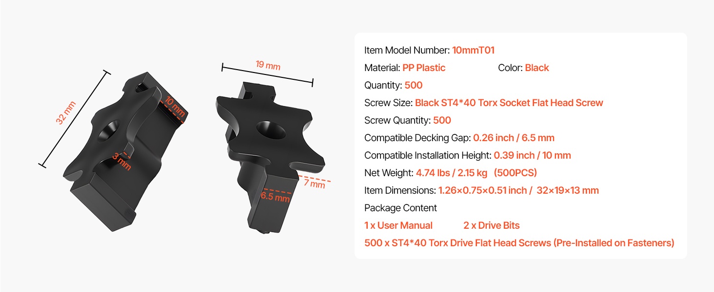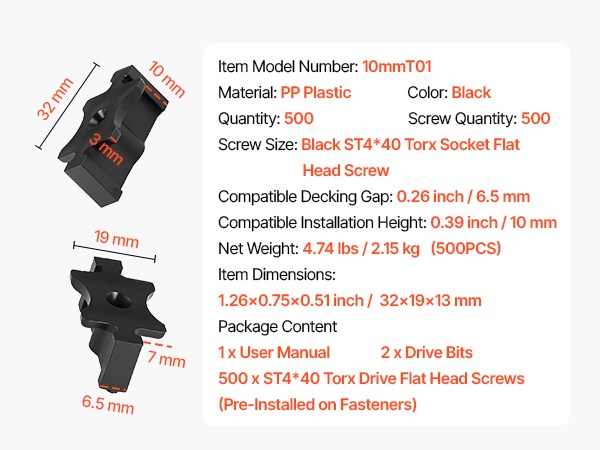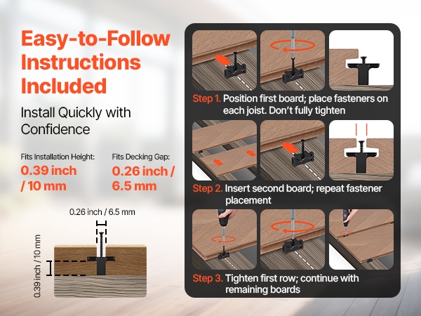 - Yhteensopiva terassilaudan paksuus: 0.39 inch / 10 mm