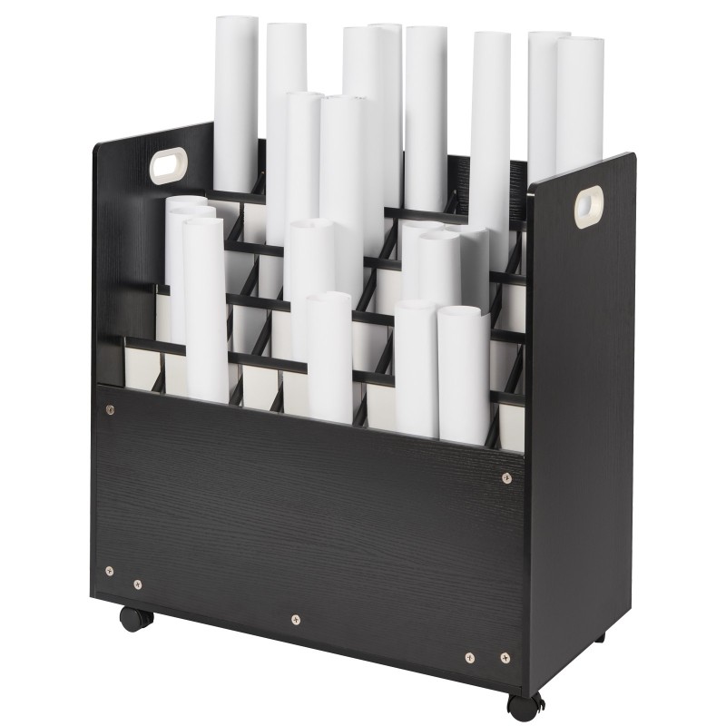 Siirrettävä piirustus- ja rullapiirustusteline, jossa on 50 lokeroa suunnitelmien, karttojen, julisteiden ja muiden rullattavien asiakirjojen säilyttämiseen. Sopii toimistoihin, suunnittelutoimistoihin, kouluihin ja kotiin, missä halutaan pitää piirustukset hyvässä järjestyksessä ja helposti löydettävissä.