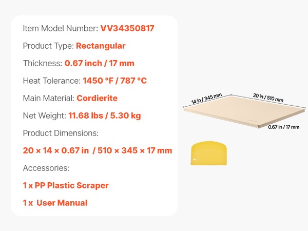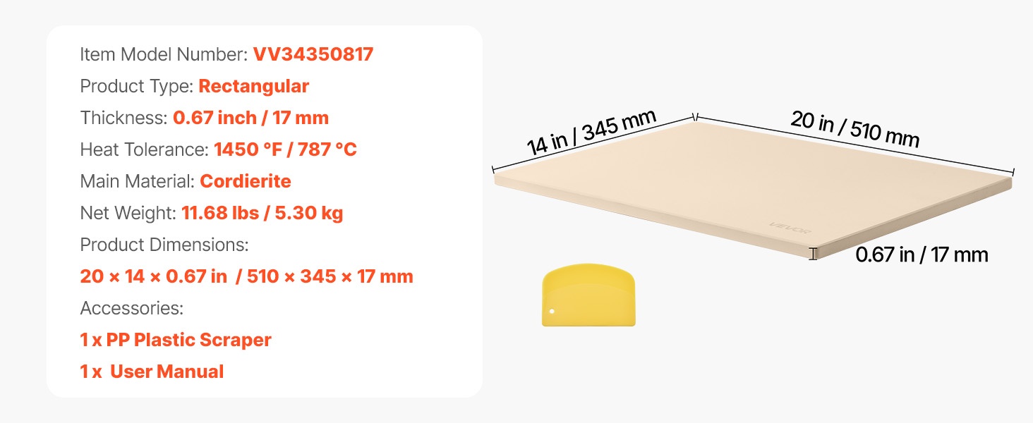 Tämä suorakulmainen kordieriittinen pizzakivi varaa tehokkaasti lämpöä ja jakaa sen tasaisesti. Kiven ansiosta pizzan pohjasta tulee tasaisesti paistunut ja rapea, samaan tapaan kuin ammattimaisessa pizzeriassa.