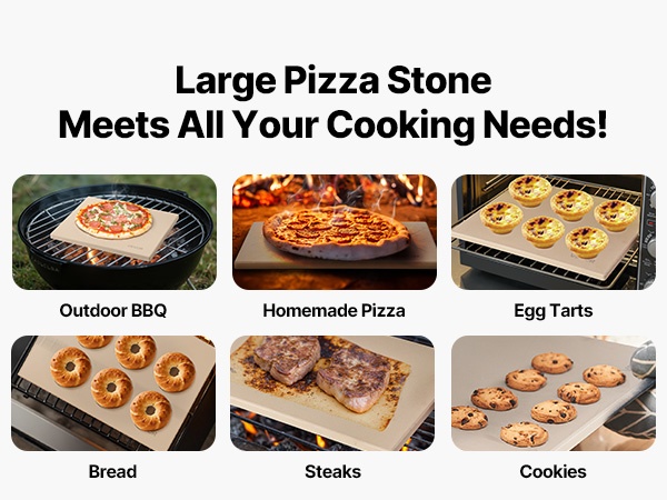 Suurikokoinen leivontakivi soveltuu pizzan lisäksi esimerkiksi leivän, sämpylöiden, keksien ja muiden leivonnaisten paistamiseen. Sillä voi myös lämmittää ruokaa uudelleen, jolloin pinnasta tulee jälleen rapea. Kivi toimii sekä kotikeittiössä että ulkona grillin äärellä.