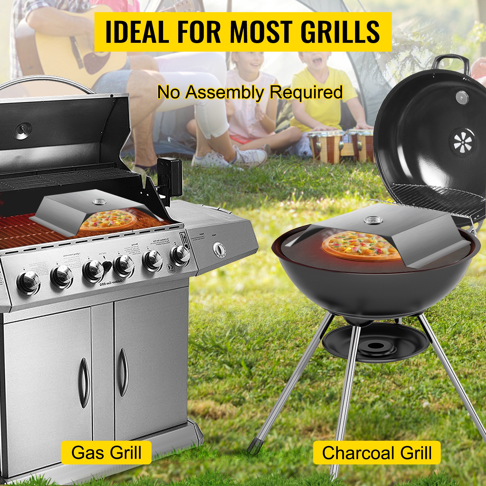 Tämä pizzauunisarja muuttaa useimmat 22-tuumaiset hiili- ja kaasugrillit käteväksi pizzauuniksi. Ruostumattomasta teräksestä valmistettu uunikammio ja 13" kordieriittinen pizzakivi jakavat lämmön tasaisesti ja poistavat taikinasta kosteutta, jolloin pizza kypsyy 2–4 minuutissa. Sarjalla voi paistaa myös piiraita, leipiä, keksejä ja muita jälkiruokia ulkona pihalla tai terassilla.