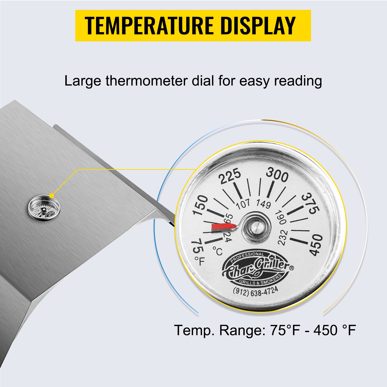 Kammion etuosassa on selkeä lämpömittari, josta näet lämpötilan reaaliajassa. Näin vältät ylilämpenemisen ja pizzan pinnan kärähtämisen.