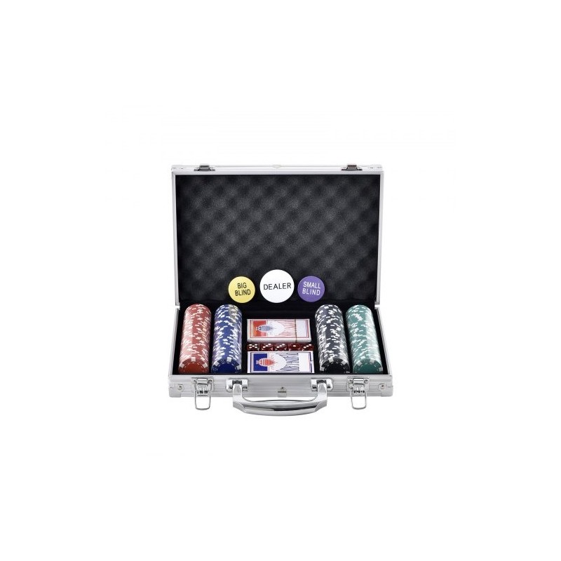 Tämä 200 kappaleen pokerisetti tarjoaa täydellisen kokonaisuuden koti-iltoihin, juhliin ja muihin pelitilanteisiin. Setti sisältää 11.5 gramman kasinotyyliset pelimerkit, pelikortit, napit ja nopat, kaikki järjestettynä kestävään alumiiniseen kantolaukkuun.