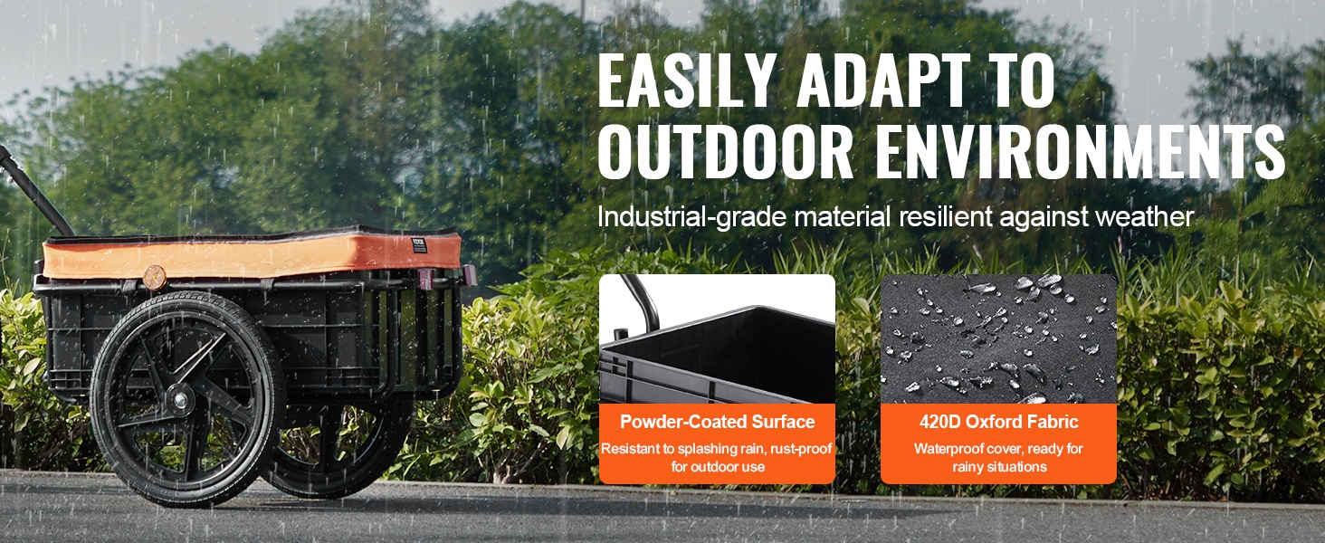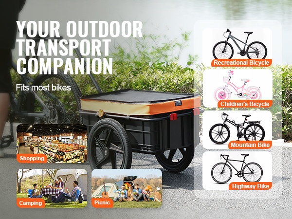 Peräkärry toimii monipuolisena kuljetusapuna jopa 70 lbs/32 kg kuormalle. Se sopii esimerkiksi leirintävarusteille, päivittäisille ostoksille tai muille tarvikkeille, kun haluat jättää auton kotiin.