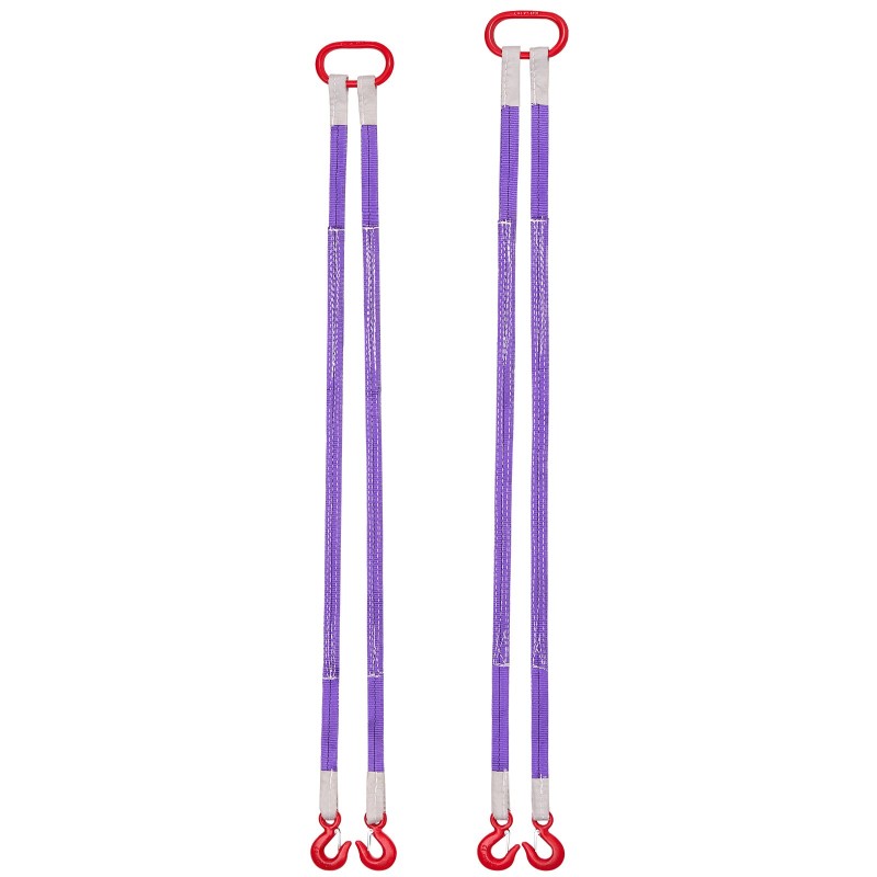 Kaksijalkainen polyesterinostoliinapari kestävillä koukuilla soveltuu raskaiden kuormien, kuten moottoreiden, nostureiden, taljojen ja kuorma-autojen kuorman käsittelyyn. Paksunnettu ja kulutusta kestävä kudos varmistaa pitkän käyttöiän ja luotettavan noston toistuvassa käytössä.