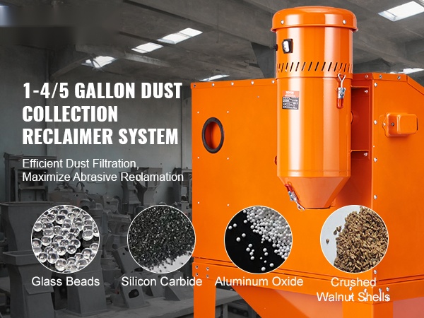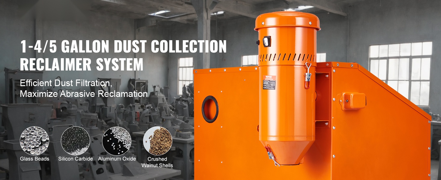 Tämä 1450W pölynkeräysjärjestelmä ja raemateriaalin talteenotin tarjoaa 6.8 L / 1.8 gallonan kapasiteetin, joka auttaa suodattamaan hiekkapuhalluksessa syntyvän pölyn ja parantamaan näkyvyyttä kaapissa. Järjestelmä soveltuu monenlaisille raemateriaaleille, kuten alumiinioksidi, lasikuulat, piikarbidit ja saksanpähkinänkuoret, ja auttaa pitämään työtilan siistinä ja turvallisempana.
