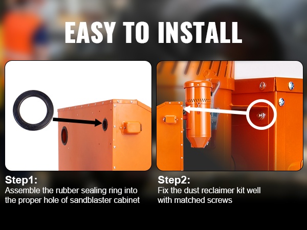Laite voidaan liittää suoraan 90-gallonin hiekkapuhalluskaappeihin ilman porausta. Jos sitä halutaan käyttää 40-gallonin, 60-gallonin tai muiden valmistajien kaappien kanssa, kaappiin on porattava itse 1 sisääntuloreikä ja 4 ruuvinreikää. Ei yhteensopiva 25-gallonin kaappien kanssa.