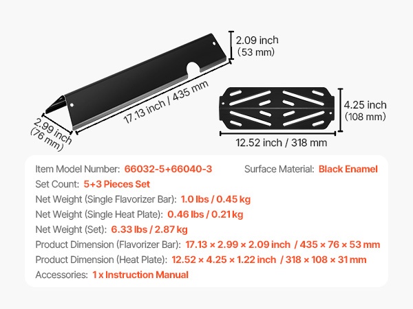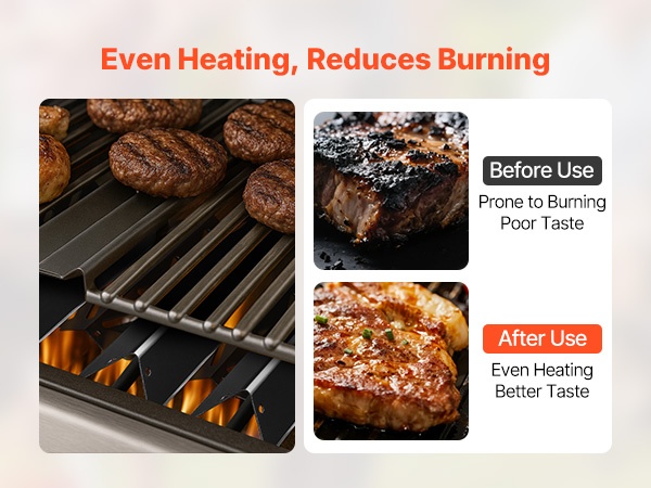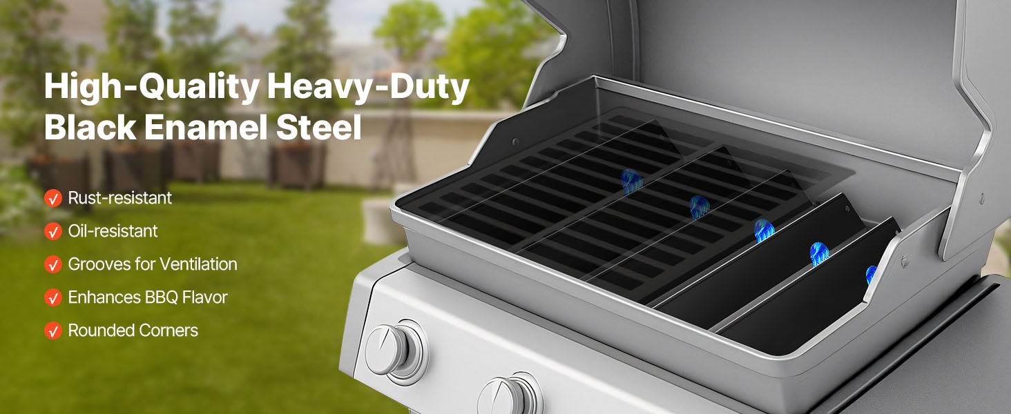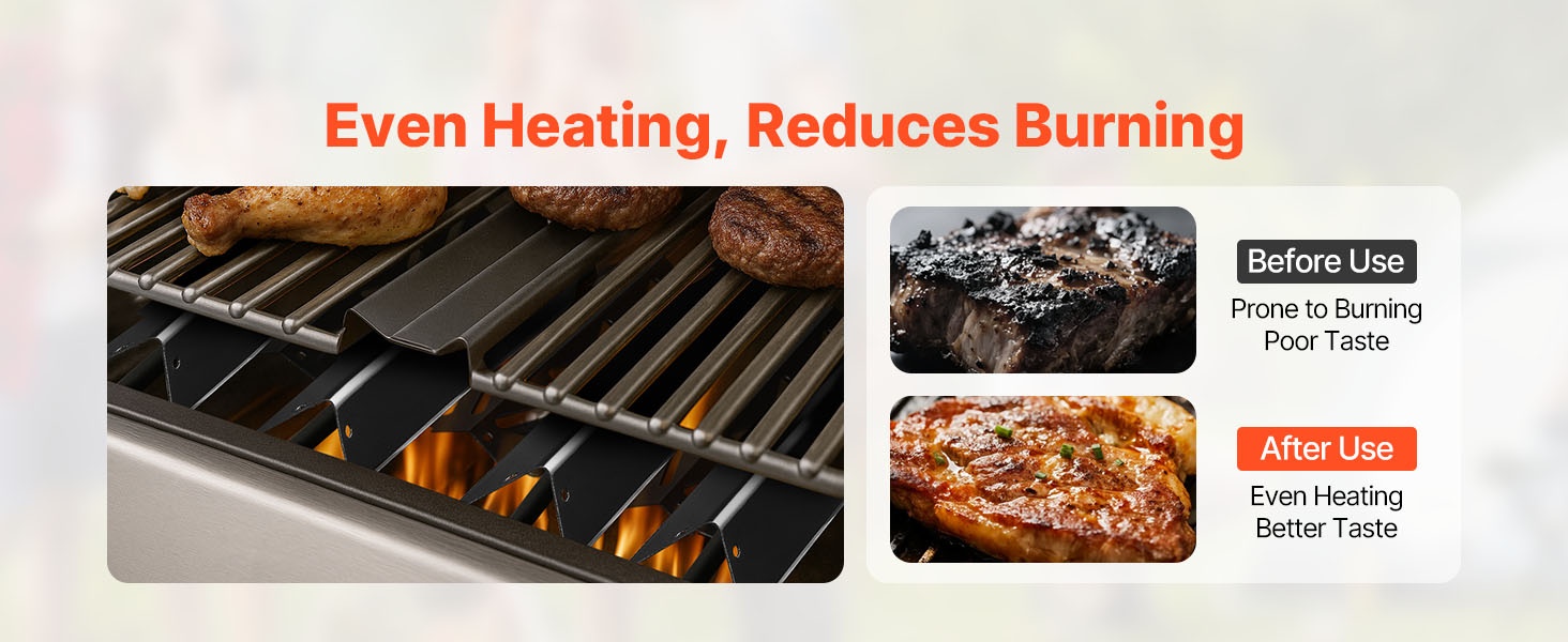 Tarkkojen mittojen ansiosta flavorizer-tangot ja lämmönjakolevyt on helppo asentaa. Paksu, laadukas materiaali kestää usein toistuvaa grillausta ja parantaa ruoan makua sekä lisää grillaamisen iloa.