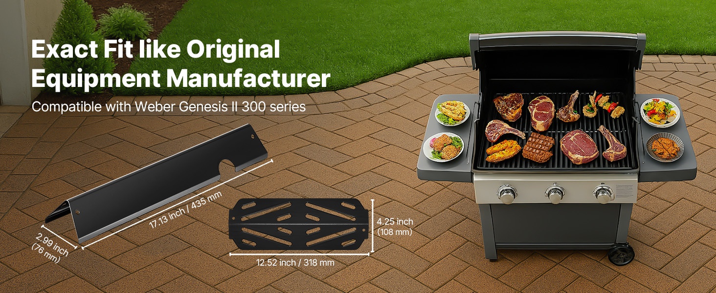 Osat on valmistettu tarkkuusmuoteilla, ja mitat on suunniteltu sopimaan Weber Genesis ll 310, 315, 335, 340, E/S 325s, ES/SX 325s, E/S 335, EX/SX/EPX-335 -grilleihin. Osat istuvat tukevasti paikalleen ilman heilumista tai löystymistä, mikä tekee käytöstä turvallista ja vaivatonta.