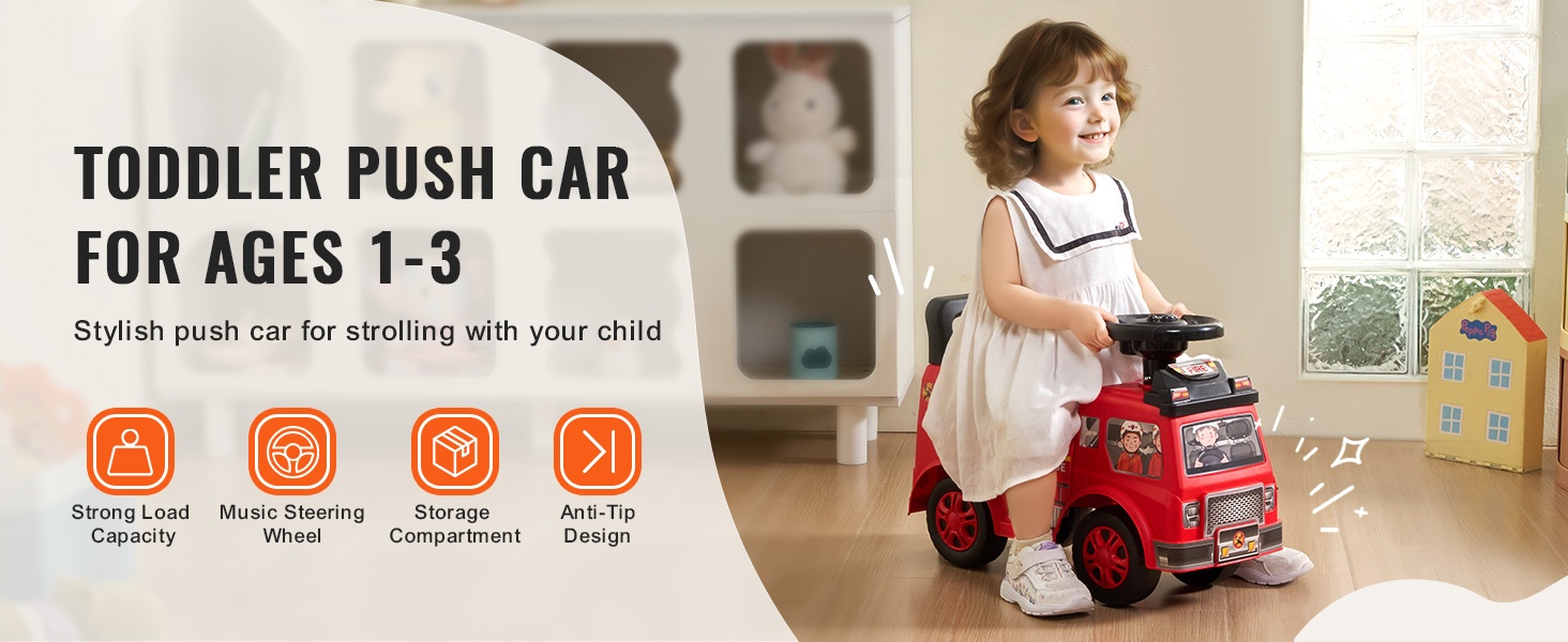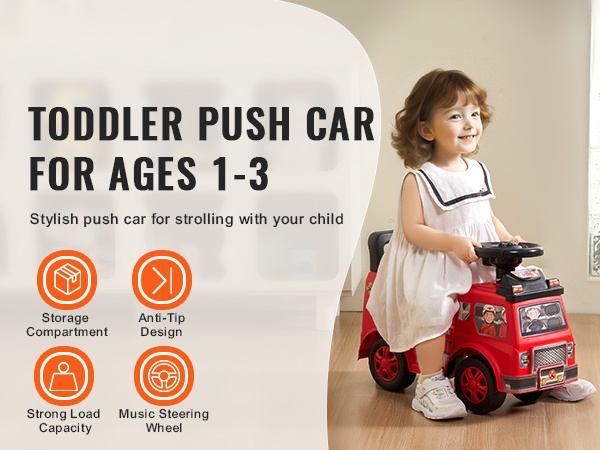 Potkuauto PP-muovia 1–3-vuotiaille nelipyöräinen musiikkipainikkeella säilytyslaatikolla kaadonestolla ja selkänojalla
